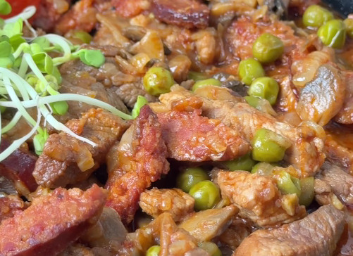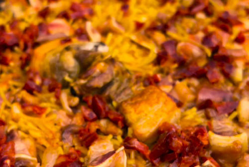 One of our friends intoroduced us to the concept of Fideua in the big paella pan, and it’s an absolutely amazing dish. We rarely eat anything that resembles to pasta, but the Fideua is on a special place in our heart. And here is a Zamoran variation, that looks good… but… I have to bravely admit, that I am not fancying eating the pig ears. I don’t like the texture, so I will leave it out.  Instead I will add